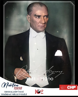 TBMM Kâtip Üyesi ve CHP Tekirdağ Milletvekili Nurten Yontar, 10 Kasım Atatürk’ü Anma Günü dolayısıyla yayımladığı mesajında Atatürk’ün fikirlerinin ve devrimlerinin bugün her zamankinden daha büyük bir rehber olduğunu vurguladı. “ Dehası, cesareti ve kararlılığıyla bir milleti zafere taşıdı