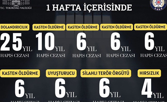 Tekirdağ Emniyet Müdürlüğü ekiplerince il genelinde yürütülen çalışmalar kapsamında son bir hafta içerisinde aranan şahıslara yönelik önemli bir operasyon gerçekleştirildi.